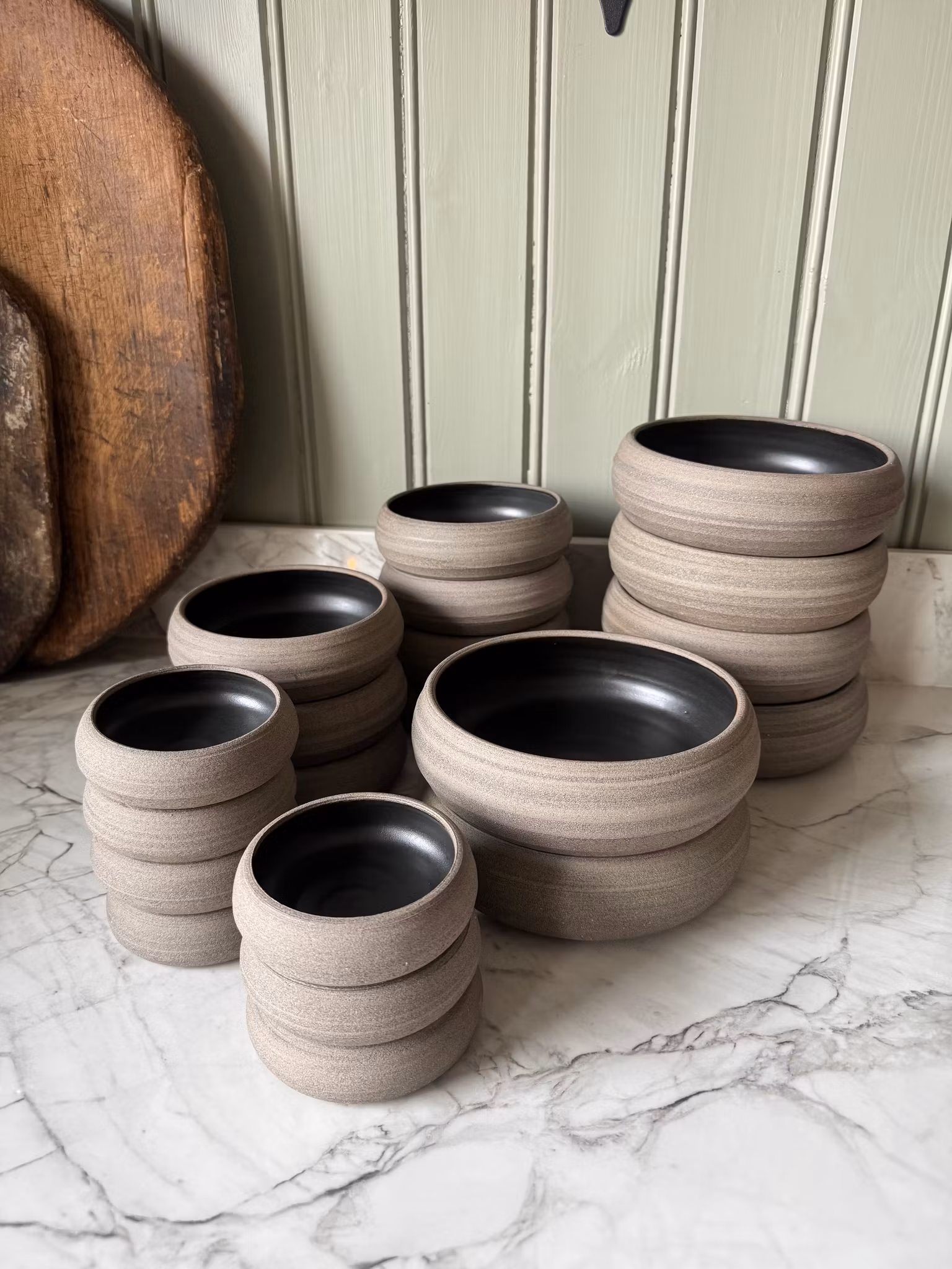 En mindre variant till den populära matskålen. Glaserad i matt svart och rå lera utvändigt. Skålarna är perfekta till ett mellanmål, snacks eller vad man nu önskar bjuda på. Tips att blanda denna storlek med den större varianten matskålen och den mindre varianten soyaskålen som en av bilderna visar. Observera att denna skål är den mellersta i storleken på bilden med flera skålar.