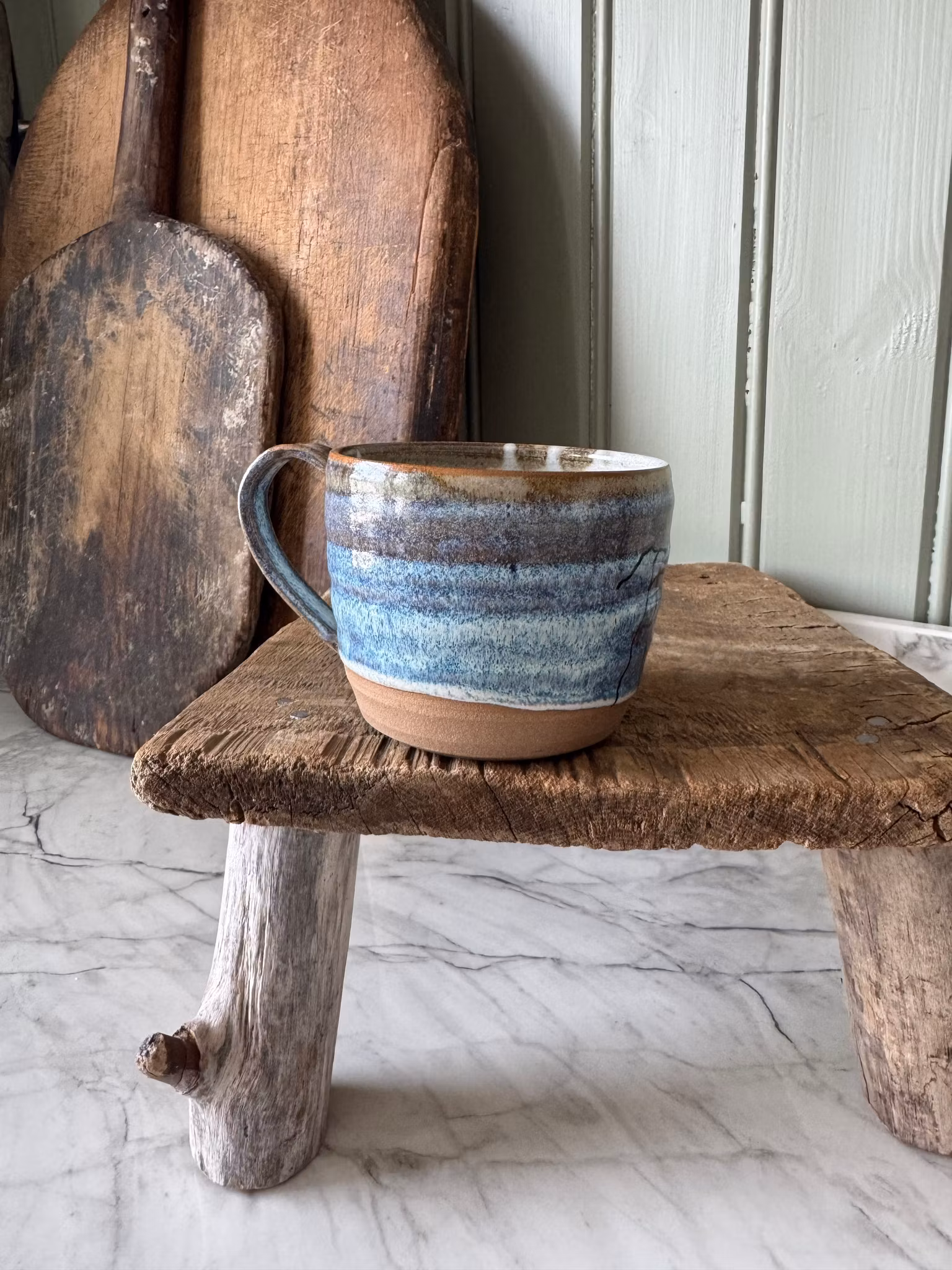 Muggen är drejad för hand i stengodslera och är glaserad i den populära glasyren Måsskiten.