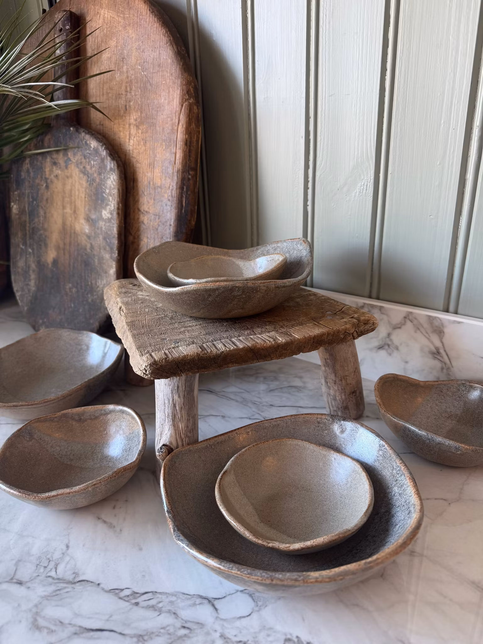 En handgjord kavlad skål som kan användas både att äta ur men också som liten fruktskål eller varför inte ha den framme med ditt favoritsnacks. Alla skålar blir unika då dom kavlas och formas för hand med hjälp av en frigolitboll. Dukningen med dessa blir ett ögongodis eftersom alla är lika men olika. Priset avser den större skålen på bilden. Mixa och matcha gärna med dom mindre skålarna.