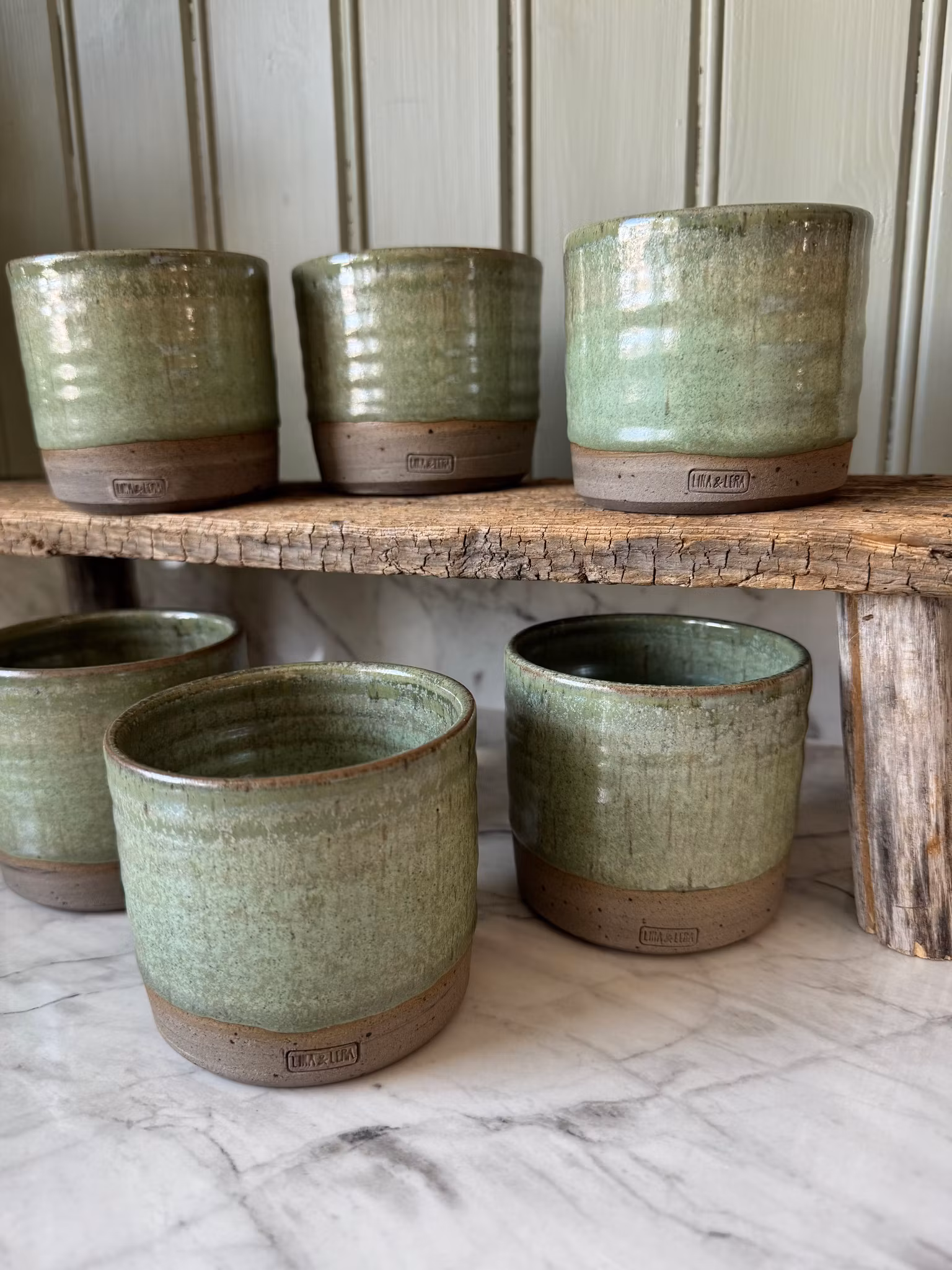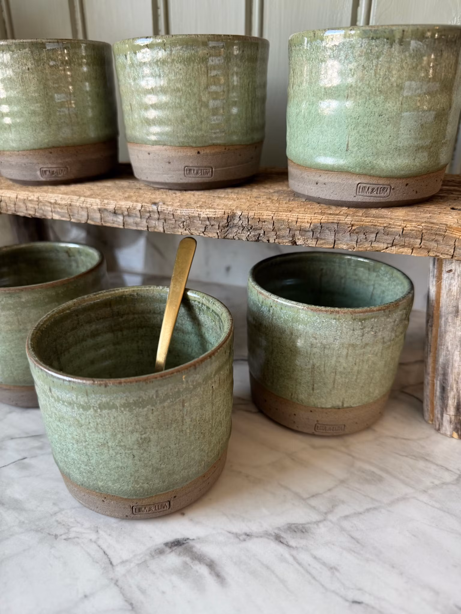 En robust mugg i rak modell drejad i återvunnen stengodslera. Används med fördel till såväl varm som kall dryck. Höjd ca 8.5 cm och 9 cm vid. Muggen rymmer ca 3.5 dl. Tål diskmaskin och mikro.