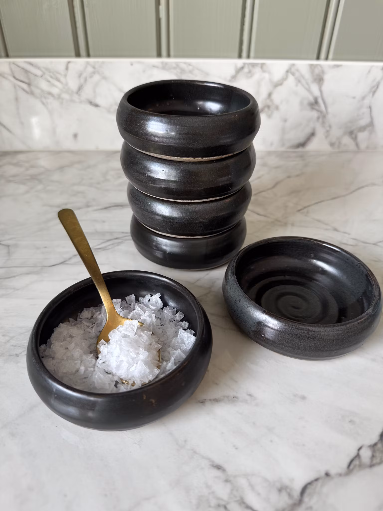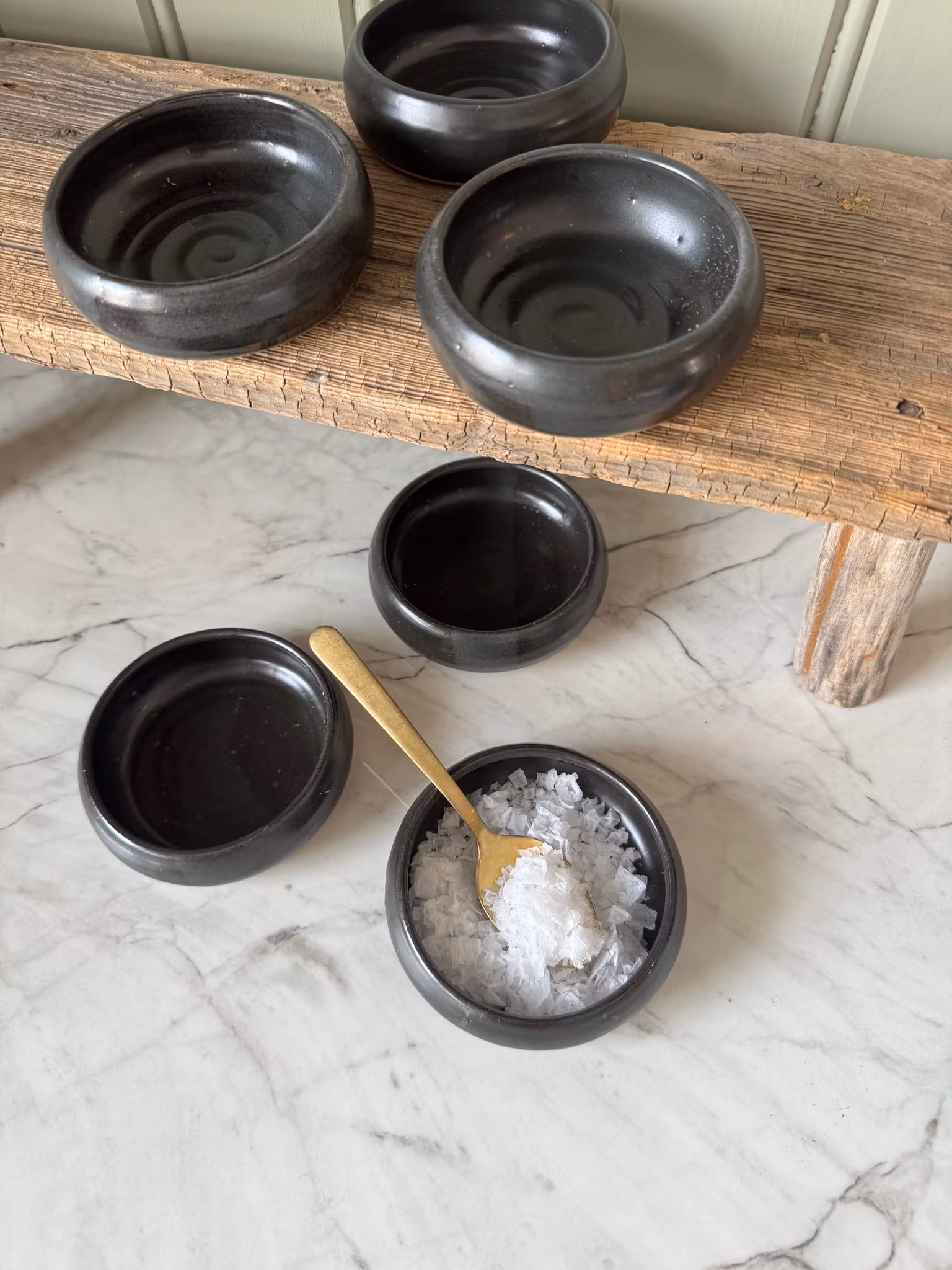 En perfekt liten skål till flingsalt, soya eller varför inte servera ett smarrigt tilltugg ur dessa. Tänk en räkceviche till ett glas bubbel när gästerna anländer. Kan med fördel användas som smyckeshållare i badrummet. Ja, valen är många. Fler småskålar till folket.